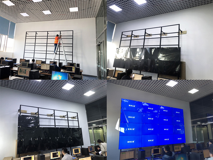 此次項目,采用信弘超窄邊3.5mm拼縫,55寸液晶拼接屏,落地支架安裝,打造一套4×4拼接大屏。