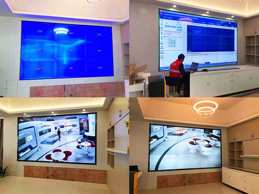 該企業(yè)之前已經(jīng)采用信弘55寸(XHL2ME),3.5mm拼縫液晶拼接屏3×4的拼接方式,信弘55寸(XHL2ME)液晶拼接屏,3.5mm拼縫 2×2的拼接方式,