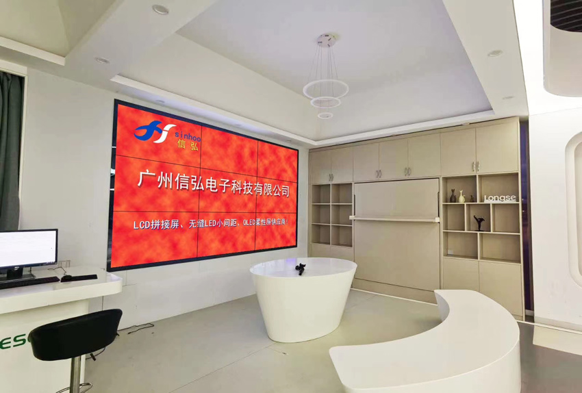 近日該集團(tuán)科技體驗(yàn)館再次全新升級智慧展廳,信弘為其智慧展廳打造了一款55寸(S55-XHL2ME),3.5mm拼縫液晶拼接屏 3x3的拼接方式
