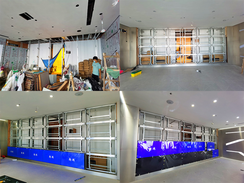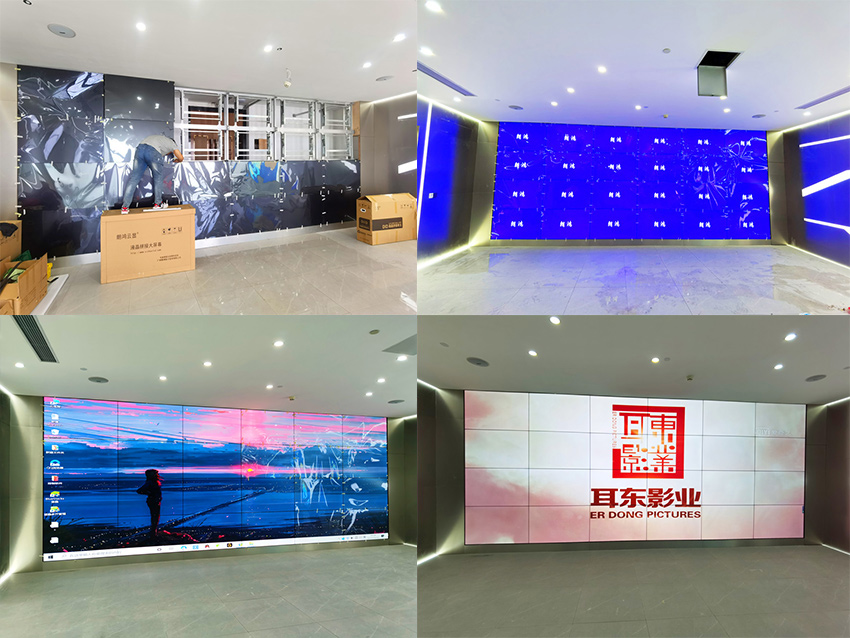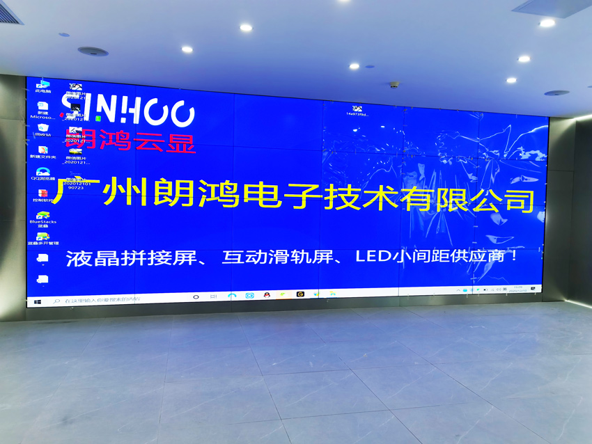 此項目由4×655寸1.7mm拼接屏在廣州天河區(qū)某公司展廳投入使用,顯示效果超過客戶預期。該用戶在CBD甲級寫字樓辦公,采用24塊1.7mm拼縫的拼接屏。
