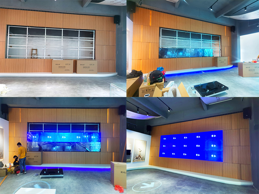 此次,采用的是信弘3.5mm拼縫,總計(jì)15塊55寸的超清顯示液晶拼接屏,安裝方式為落地支架安裝。